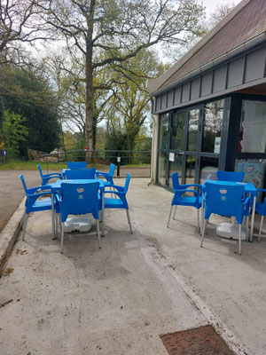 Un abri en dur a remplaçé l'ancien châpiteau (appréciable lorsqu'il pleut !) et des tables de pique-nique permettent de se poser pour prendre les repas confortablement.